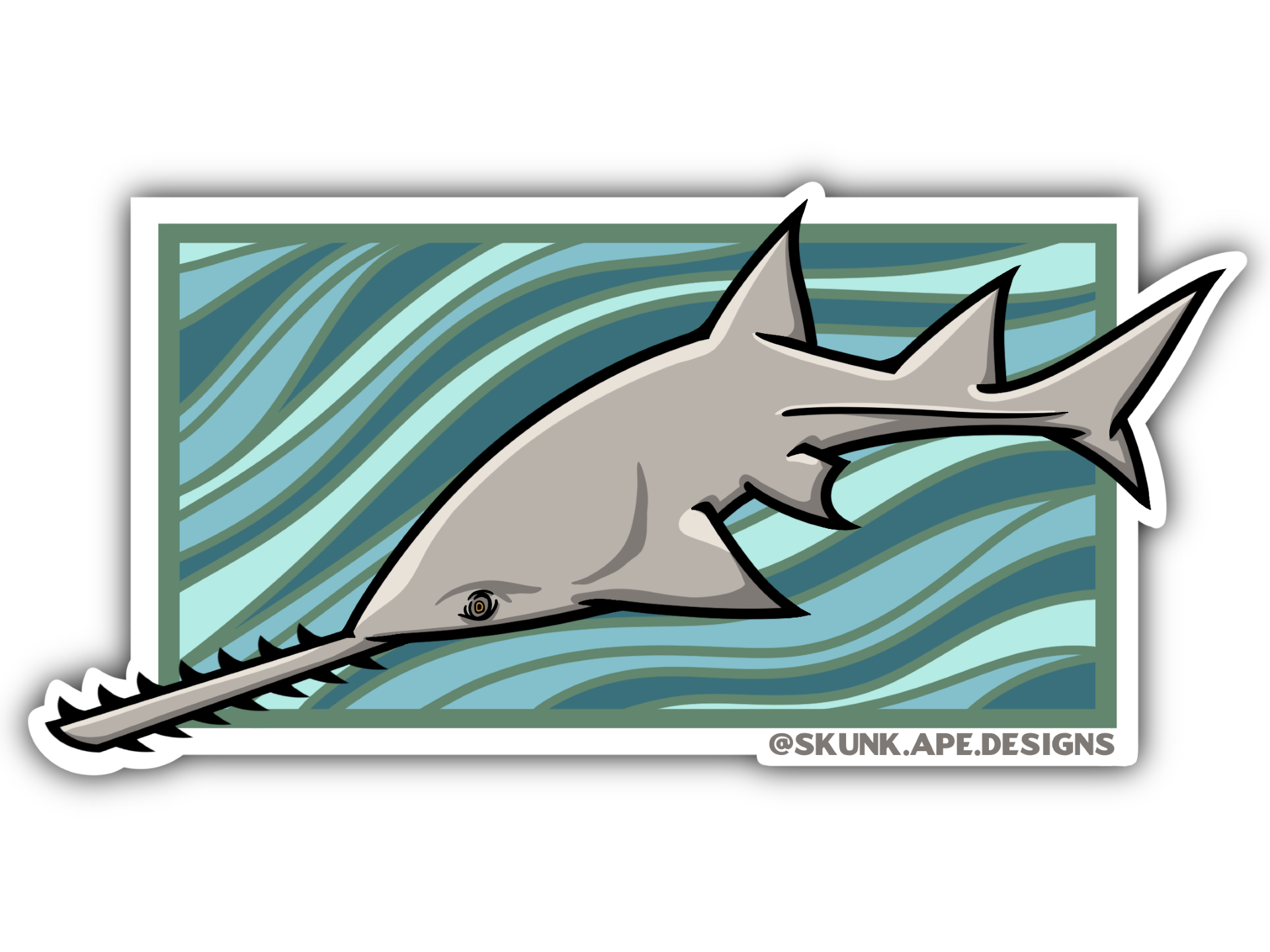 New Sticker Drop! The smalltooth sawfish (Pristis pectinata) is the only species of sawfish native to Florida waters. It is easily recognized by its long, flat snout lined with teeth—commonly called a "saw"—as well as its flattened head and body. Featuring a strong adhesive backing, this sticker applies effortlessly to any smooth surface and is designed to withstand the elements. Whether you're an avid angler, outdoor enthusiast, or simply appreciate the natural beauty of Florida’s backcountry, this sticker makes a perfect addition to your collection.
