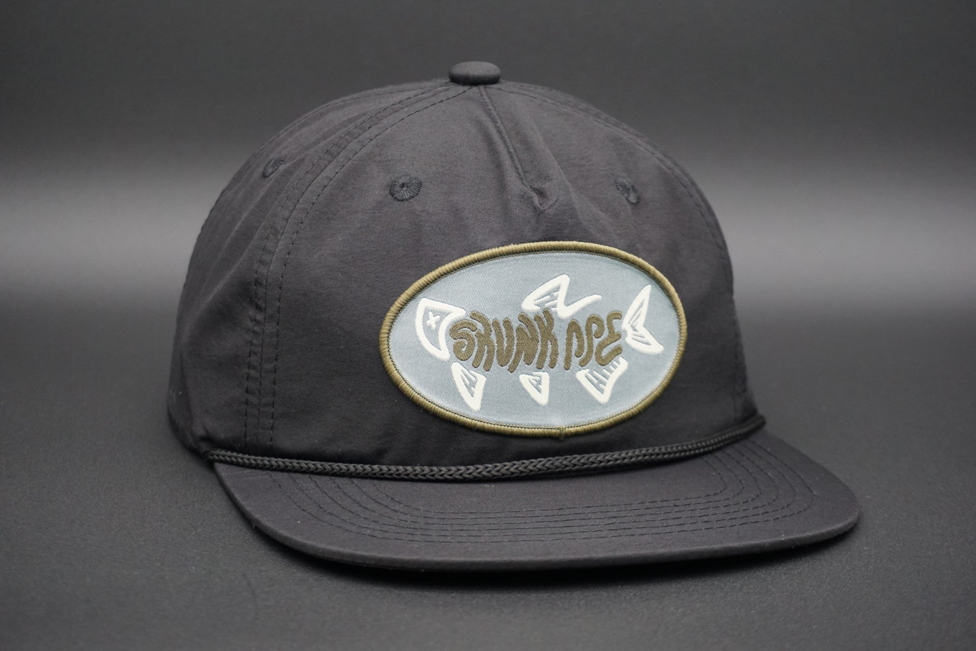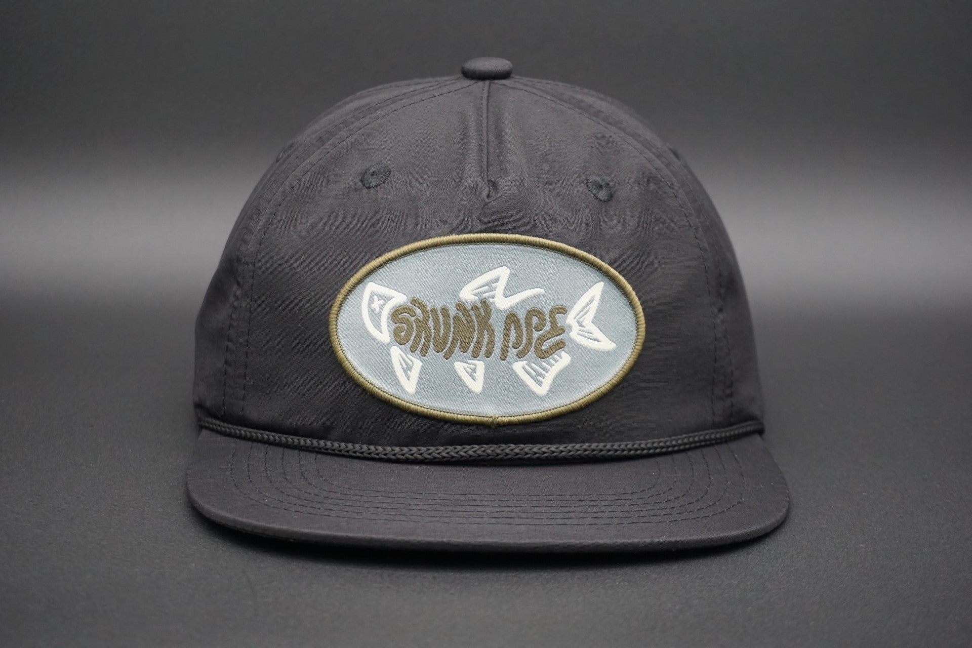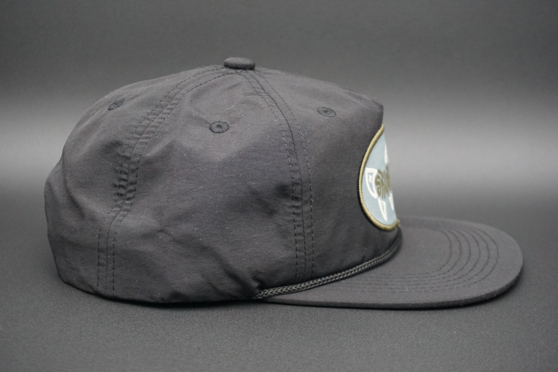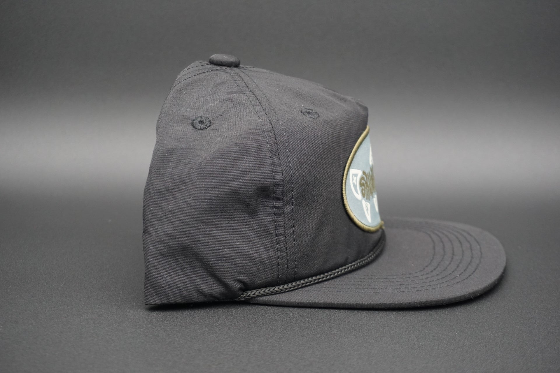 Black on Black Rope Hat with Dead Tarpon Woven Patch - the perfect accessory for your outdoor adventures! The tarpon patch adds a unique touch to the stylish design, while the comfortable fit and breathable fabric make it ideal for all outdoor activities. Get yours today and make a statement on your next adventure!