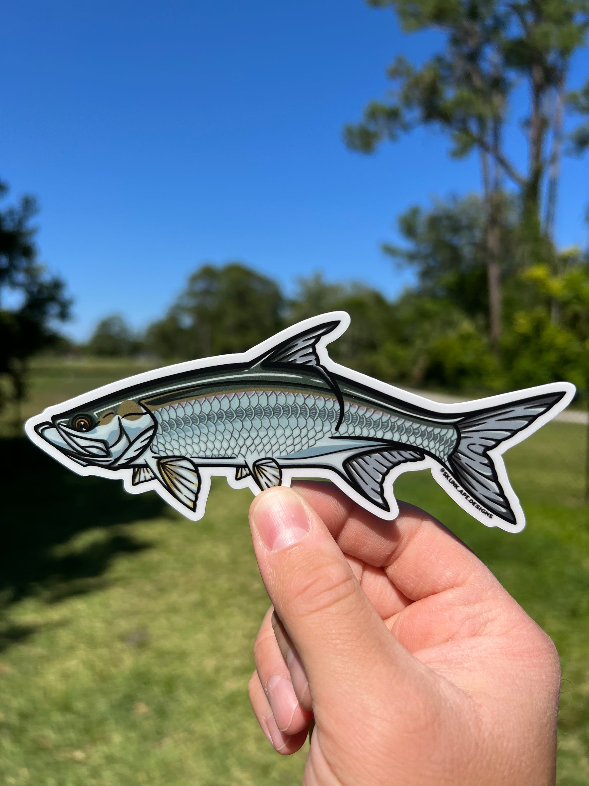 Add some fishing flair to your gear with this stunning tarpon sticker. Featuring a vibrant illustration of a tarpon, this high-quality vinyl decal is the perfect way to show off your love of fishing and the great outdoors. With a durable adhesive backing, this sticker is easy to apply to any smooth surface and will hold up against the elements. Whether you're a seasoned angler or simply admire the beauty of tarpon, this sticker is a must-have for any fishing enthusiast.